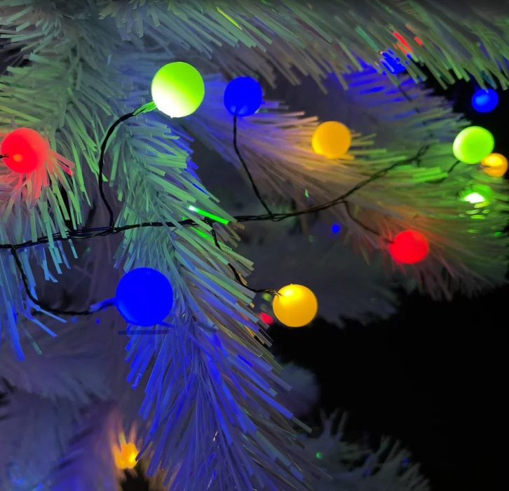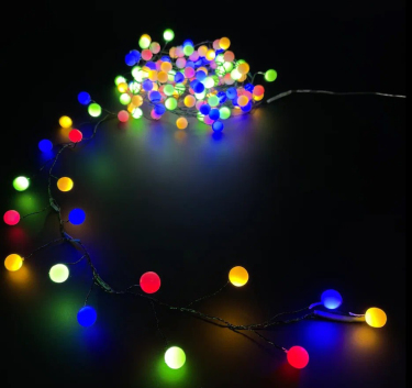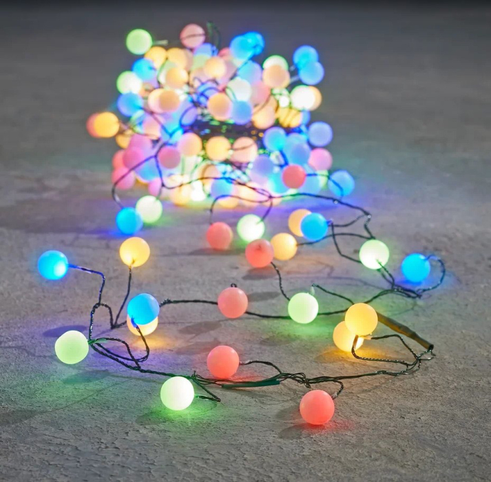 Декор Гирлянда кластер-ягодки на зеленом проводе мультиколор 80 ламп 8 функций 200 см таймер