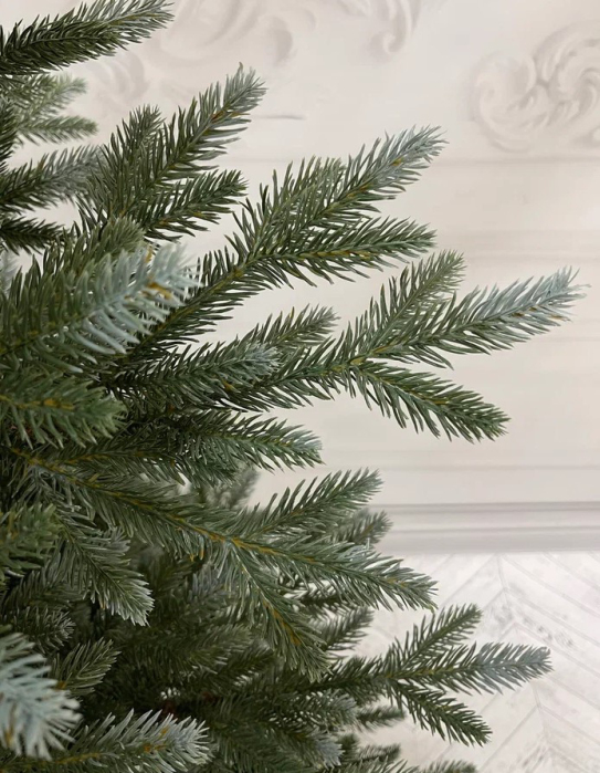Ель TreeDeLuxe «Алтайская» выполнена из 100% литой резины (РЕ) - материала, который максимально точно передаёт форму и структуру настоящей хвои. Каждая веточка создаётся индивидуально: иголочки различаются по длине и толщине, образуя живую, природную фактуру. Плавный переход оттенков - от глубокого зелёного у основания до светло-серебристого на концах - придаёт ели эффект лёгкого инея и естественного блеска.